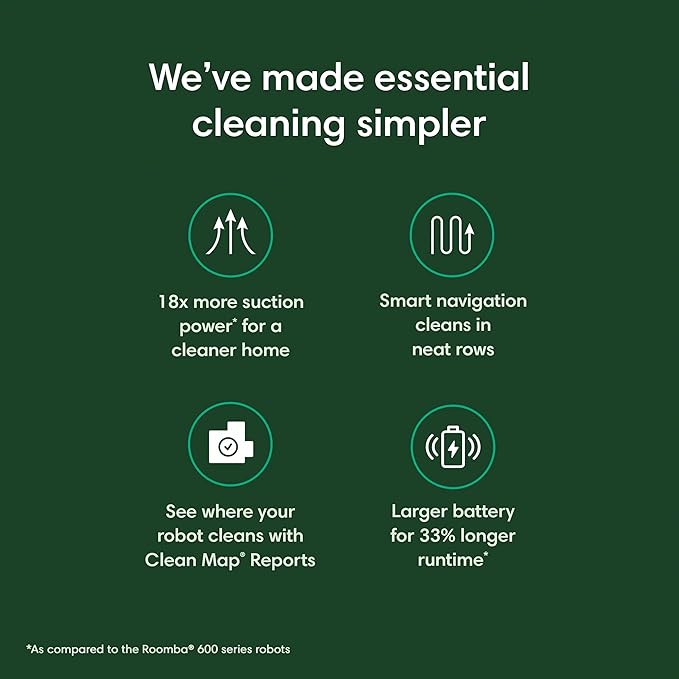 - THOUGHTFULLY DESIGNED TO SIMPLIFY CLEANING. The iRobot Home App simplifies your life with features like Clean While I’m Away, suggested cleaning schedules, and a Clean Map report so you know where your Roomba Vac Essential robot cleaned, even if you weren’t home to see it.