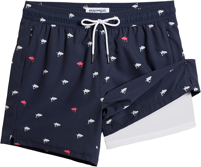 maamgic Mens Swim Trunks with Compression Liner 5″ Stretch Beach Shorts Quick Dry with Zipper Pockets No-Chafing Board Shorts