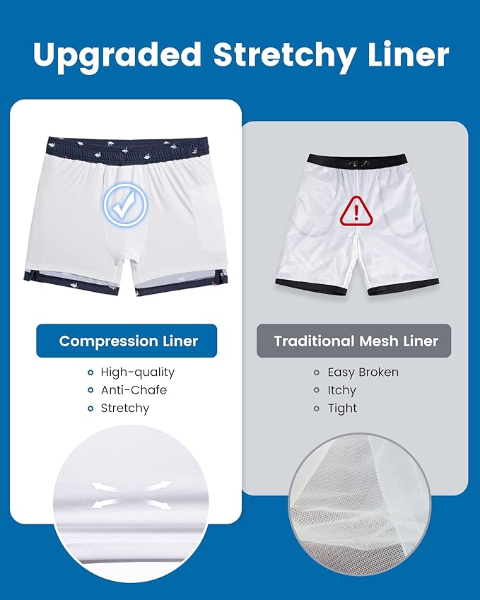 - 2-in-1 Compression Liner: The inner stretch lining is high-quality, skin-friendly, and far superior in feel to the old fishnet mesh liners. No need to wear extra underwear or worry about issues with chafing.